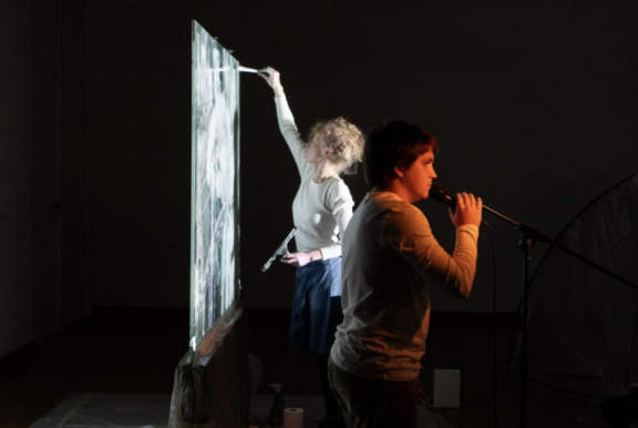 In hun performance tekenen ze live op glasplaten. Lijnen, vlekken, reflecties en klanken verstoren het directe zicht en horen. Geluid, tekst en beweging reageren op elkaar. Zo ontstaat een open dialoog waarin toeval en verstoring richting geven. Het werk nodigt het publiek uit om anders te kijken en te luisteren. De performance opent nieuwe perspectieven op zintuiglijke toegankelijkheid en communicatie en nodigt het publiek uit zich over te geven aan een moment dat telkens anders wordt ervaren. De performance (30 min) wordt gevolgd door een nagesprek en een drankje.
